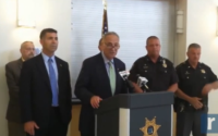Above: A screenshot picture of Senator Charles Schumer speaking Tuesday at the Ulster County Law Enforcement Center from a Times Herald-Record video of the press conference.