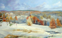 Above: "Catskill Snow Storm in October" by Francine Barbet. Image via barbetart.com.