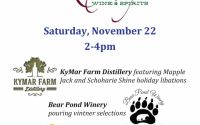 Please join us Saturday, November 22, 2-4pm for a trio tasting! Bridget from KyMar Farm Distillery will be whipping up holiday libations using Mapple Jack and Schoharie Shine. Mark from Bear Pond Winery will be pouring various wines from his lineup. And... Read more