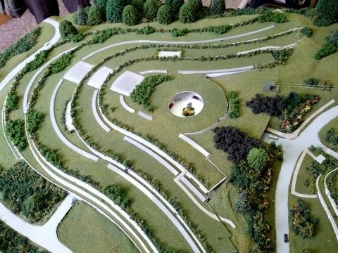 Above: A model of one of the the planned hotels, viewed from above, of the proposed Belleayre Resort project. Photo by Julia Reischel.